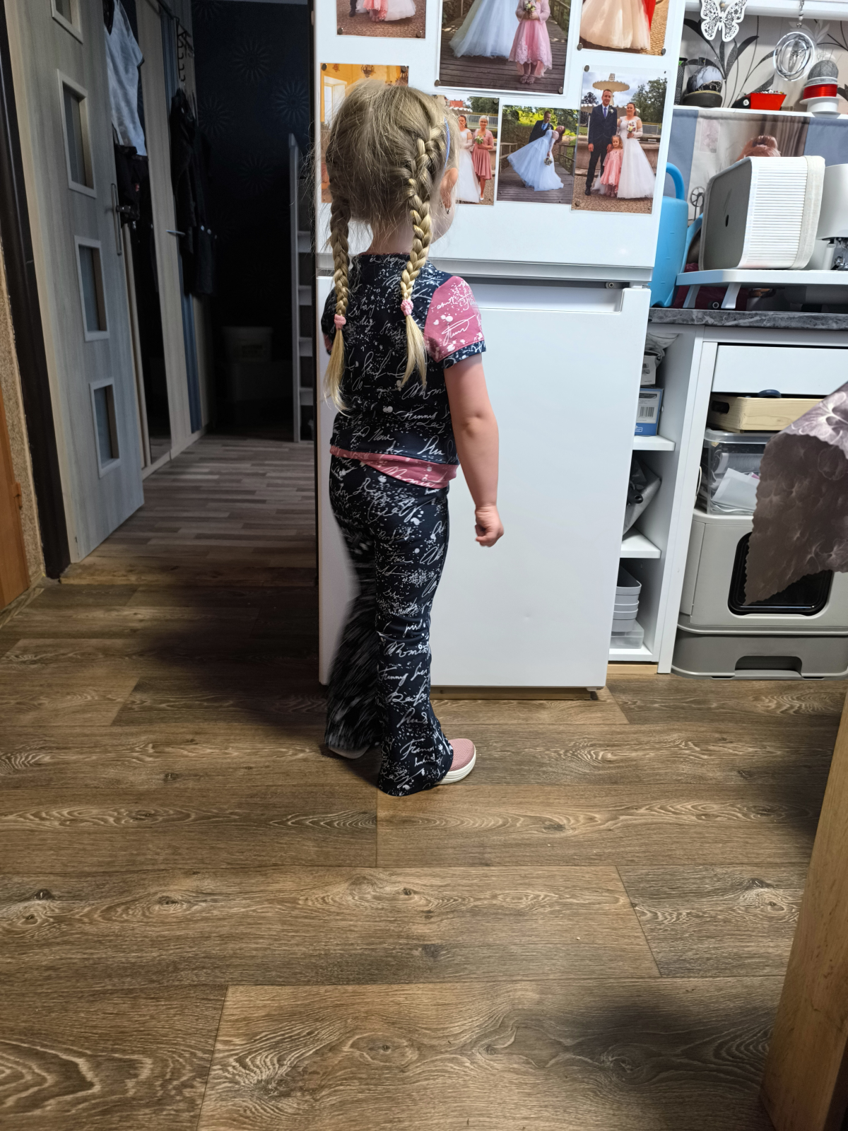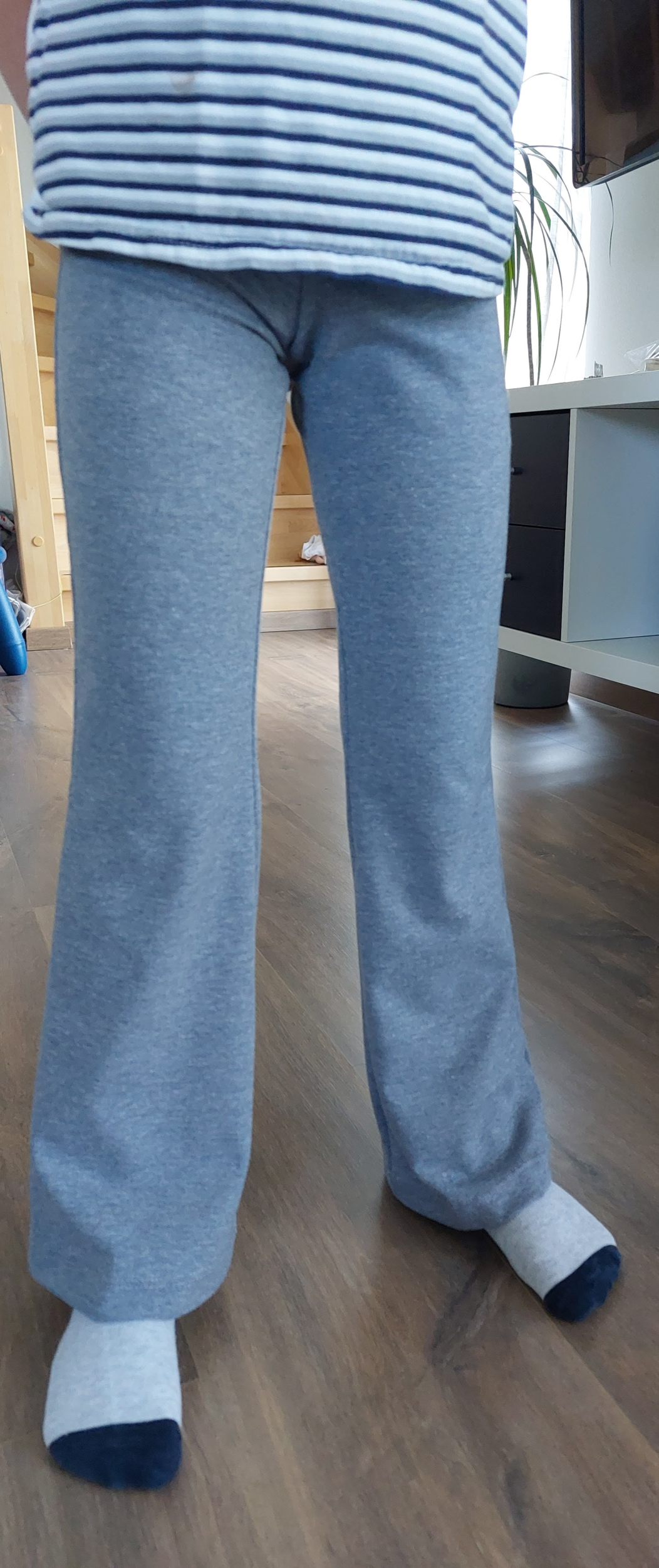 „Sed som hneď znížila,v páse zatial bez gumy,uvidim časom. Z upletu su take jemnejšie, nabudúce z teplakoviny radšej. Hore su take voľnejšie, možno ešte mensiu veľkosť, lebo šírka v rozkroku sa neda upraviť. Inak rychle šitie,a vo video návode super vychytávky“