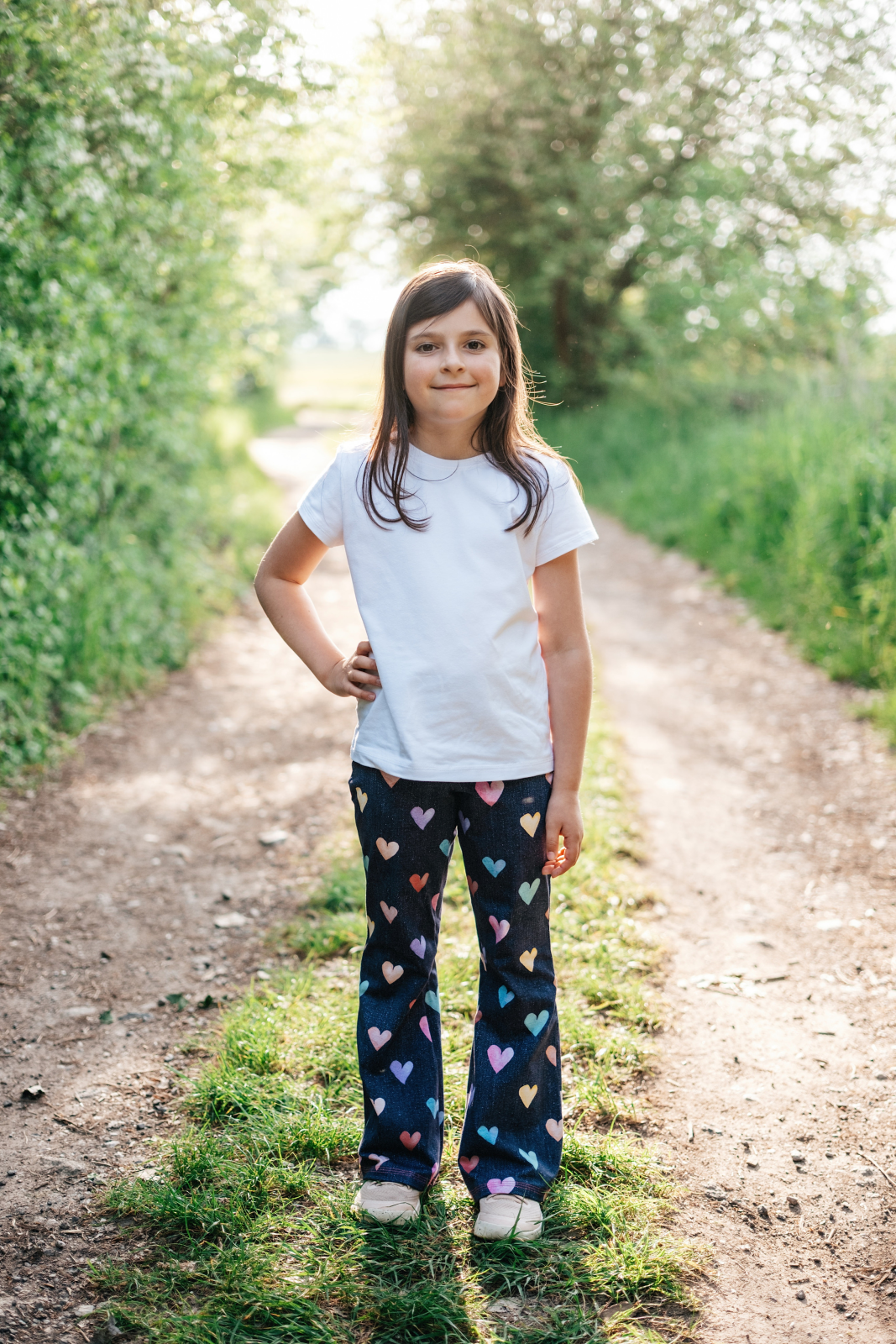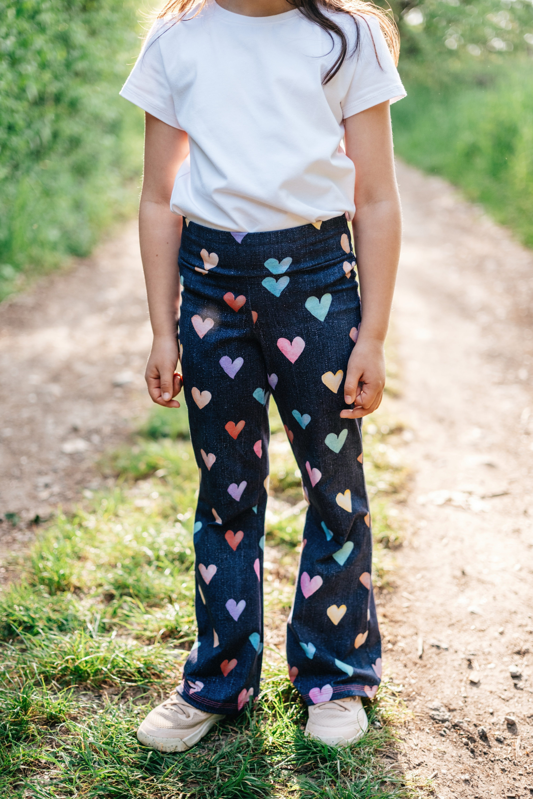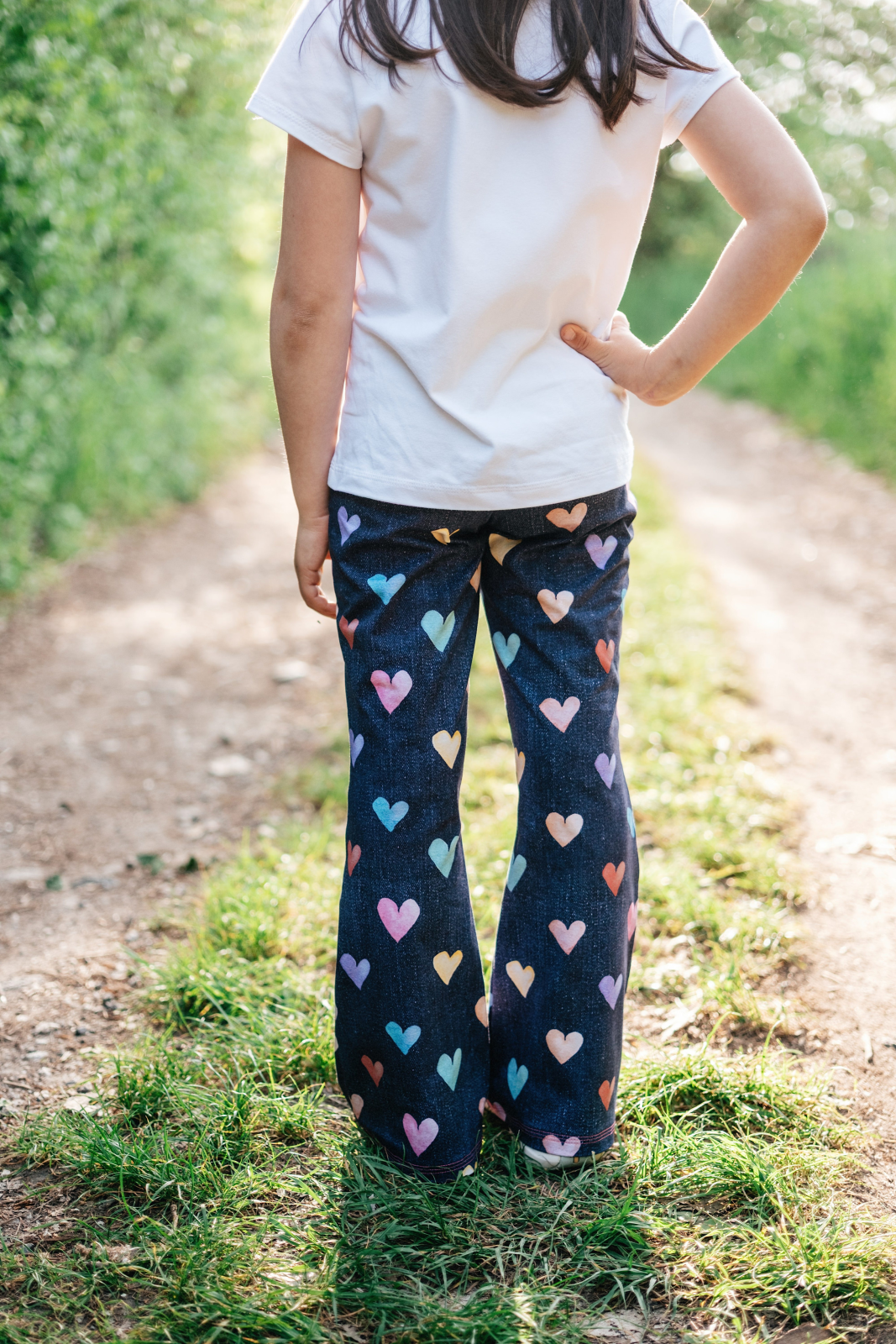 - TIP: ušijte zvonáče z imitace džínoviny, budou k nerozeznání od džínů a přitom pohodlné pro sezení ve škole i pohyb na hřišti.