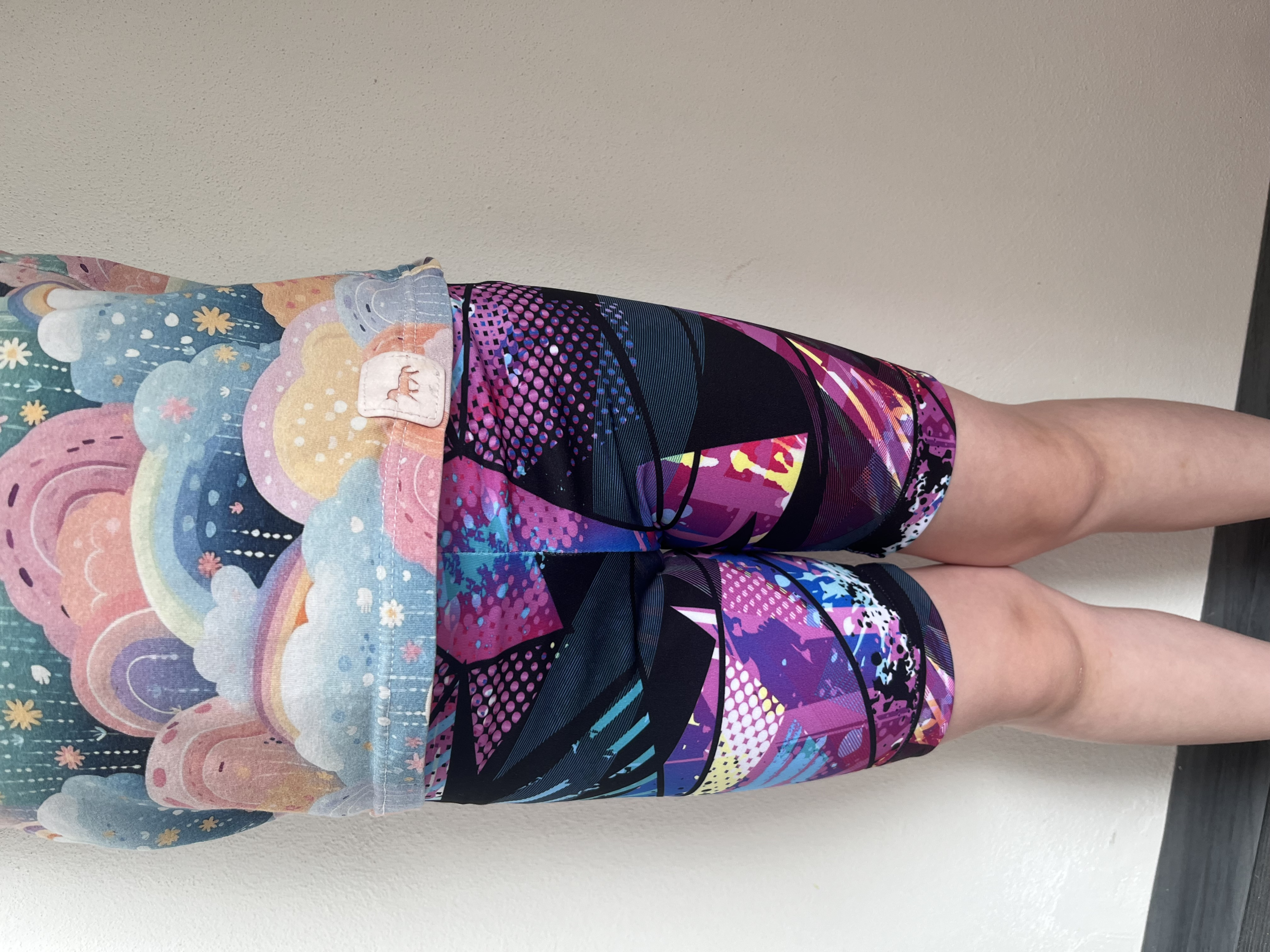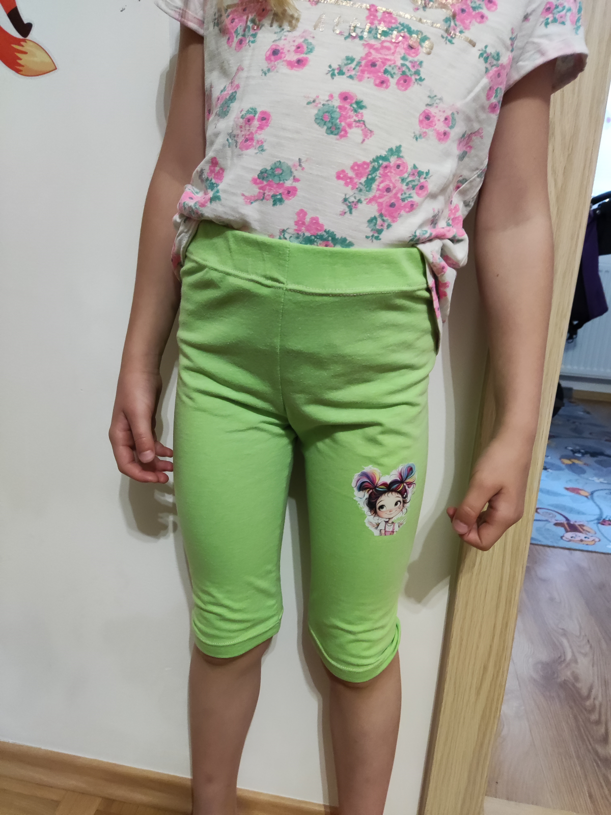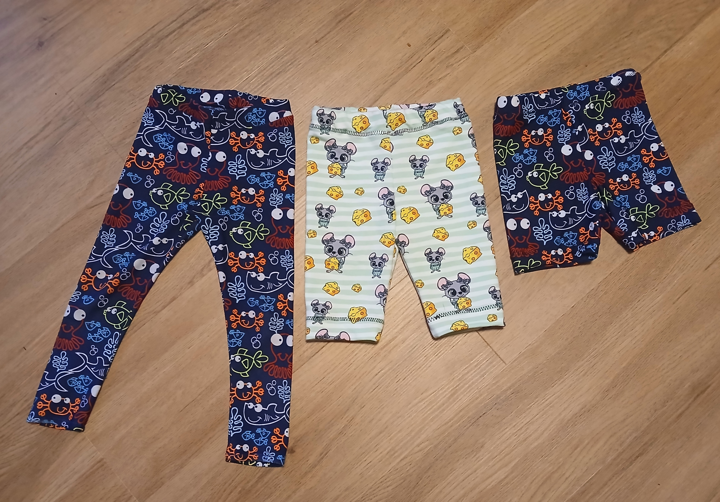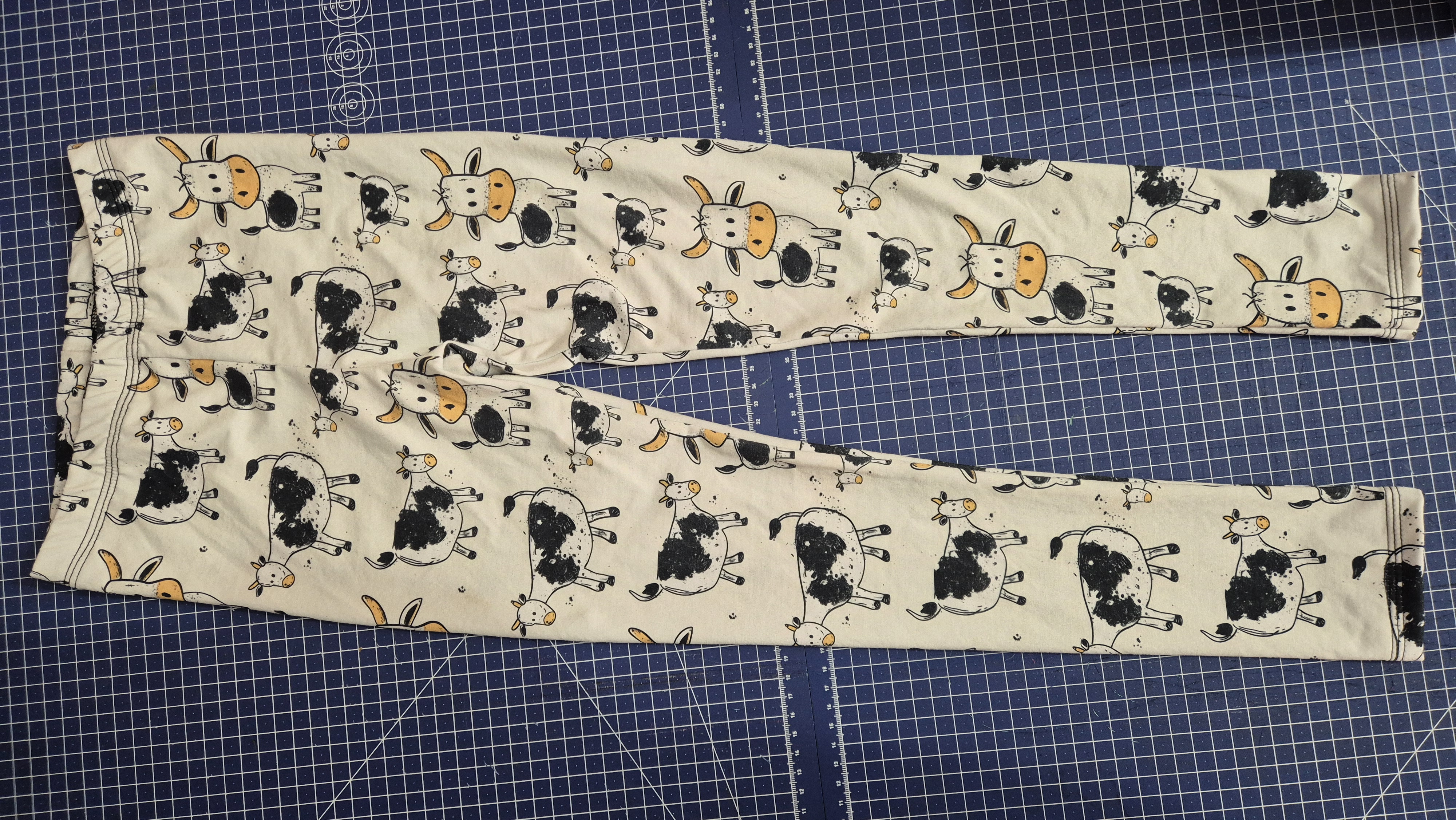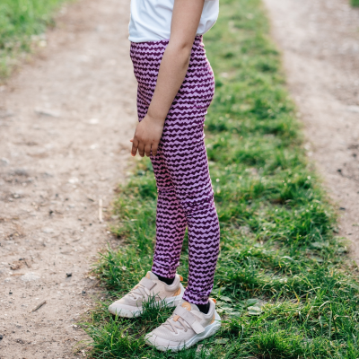 MR: "Jako vždy super šití, dcera je hubená, takže šiju šířkově 134 a délkově 145. Sednou jí lépe než třeba legíny od shape a lepší než živolegíny. A výhoda je, že jsou z jednoho dílu, takže rychlejší šití. Jinak jsou to legíny pod kolena na lítačku na ven k babičce, proto ta infantilní látka:-)." *