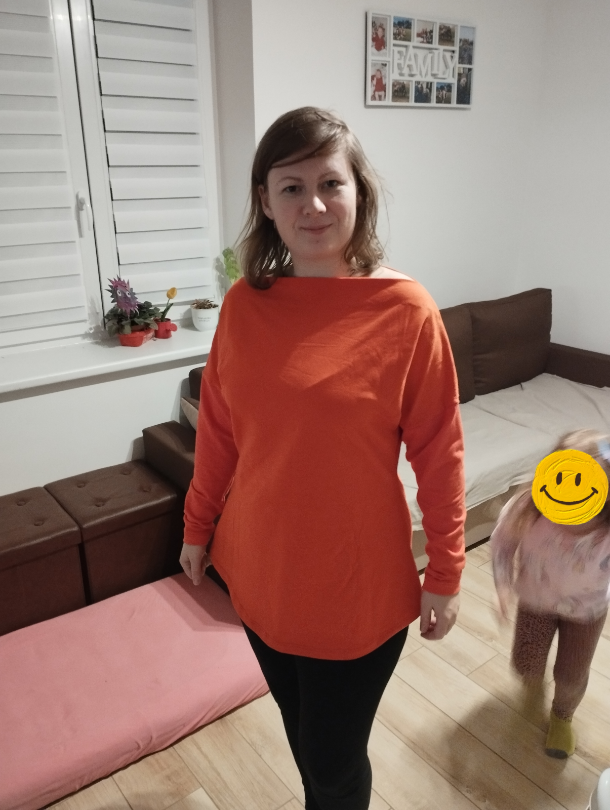 Evik: "Jelikoz jsem vysoka 177cm, ne vzdy mi vse sedi, strih jsem si tedy upravila na miru. Jedine, co jsem upravovala podle sebe, byl spodni lem mikiny, ktery jsem na bocich zakoncila rovne. Dle strihu mi kuriozne odstavala do stran, proto jsem srovnala do rovna. Sedi krasne. S videonavodem to slo jedna basen. " *