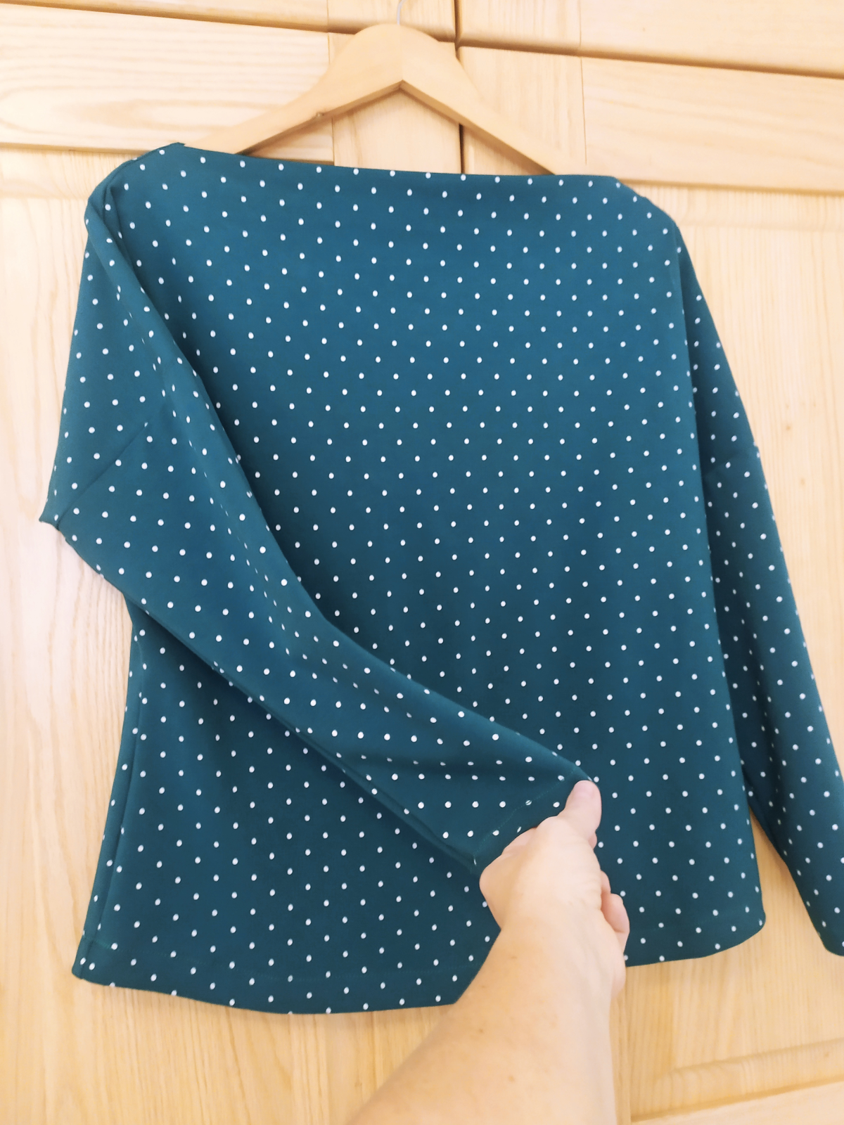 MB: "Střih jsem použila na halenku s výrazným vzorem, sklidila jsem velkou chválu. Jen u krku jsem trošku bojovala s výstřihem. Videonávod perfektní jako vždy." *