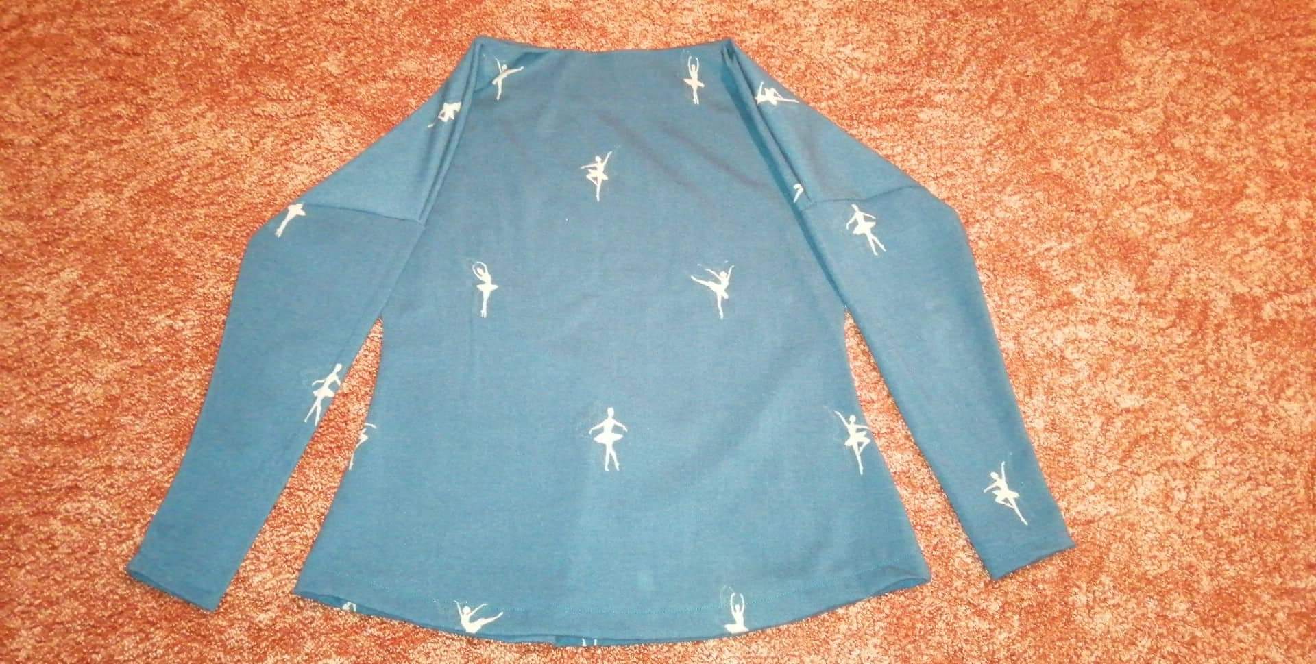 MF: "Střih i videonávod perfektní. Šilo se rychle a snadno, jen si nejsem jistá, zda si zvyknu na to přiléhání látky u krku. Střih jsem musela ještě asi o 3 cm zkrátit, protože jsem prcek." *