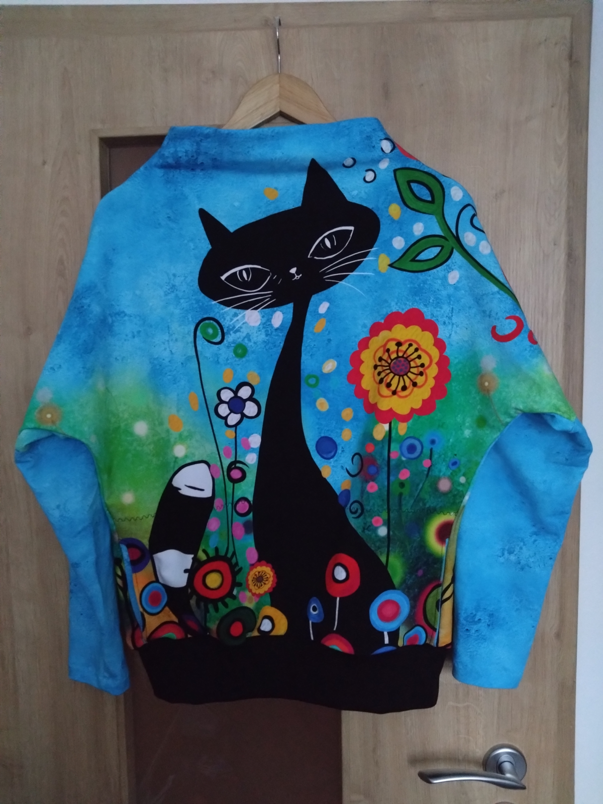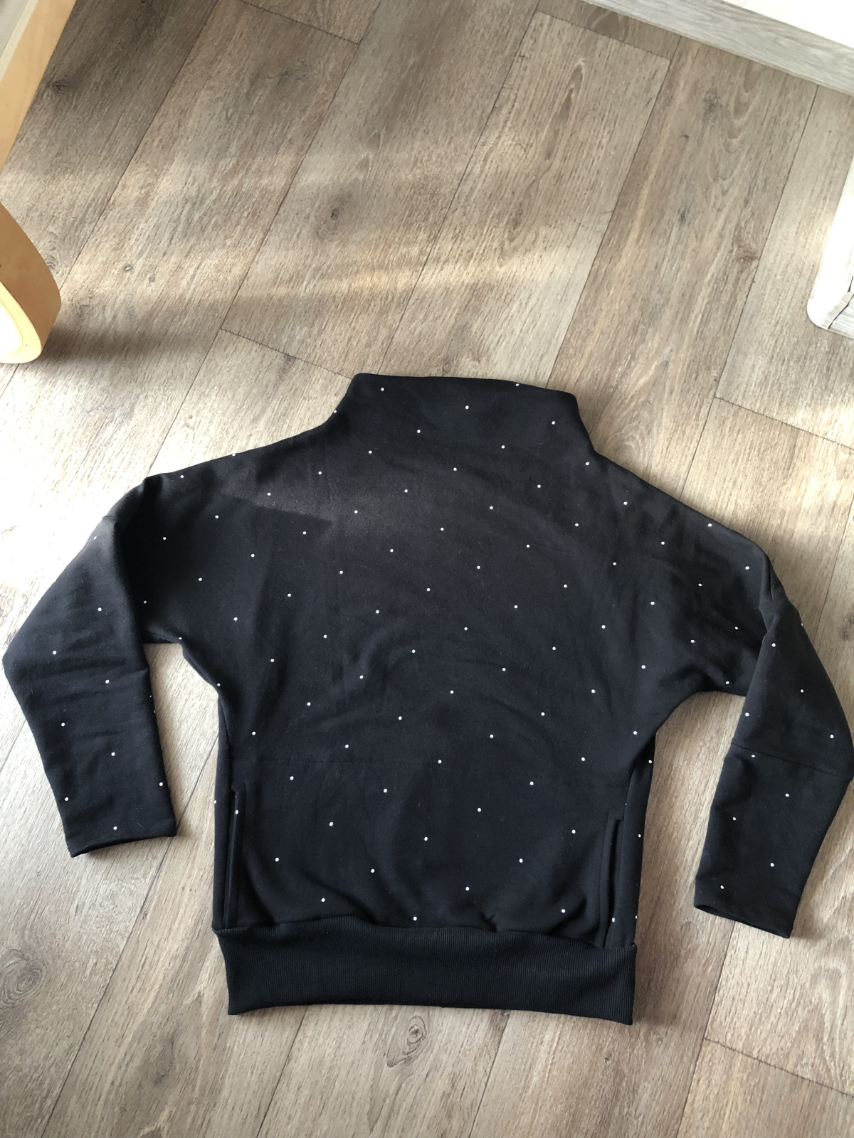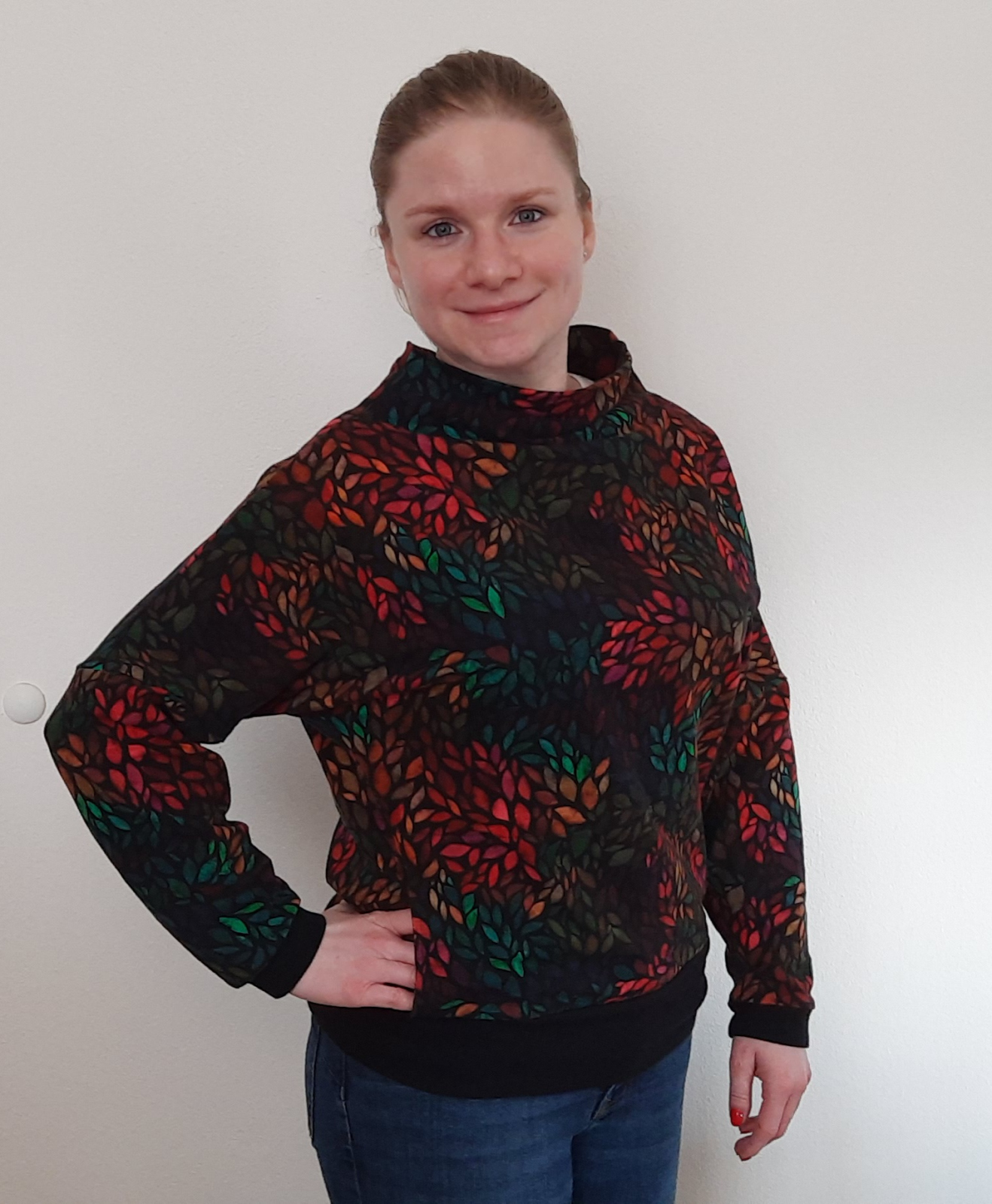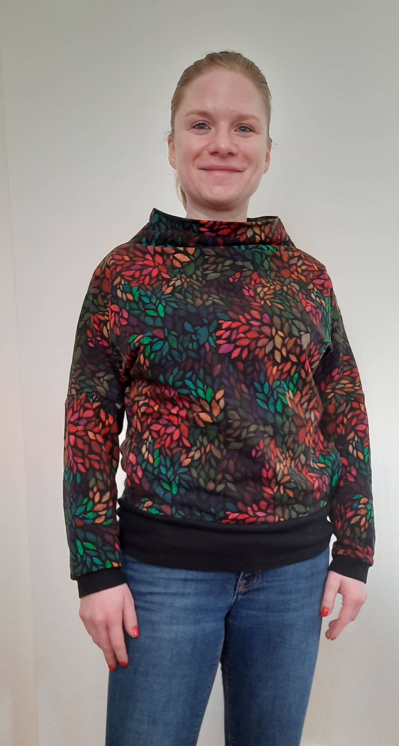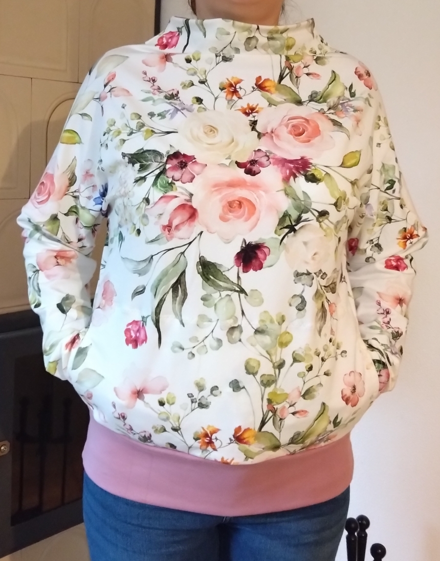 "Mikina se šila moc hezky. Měla jsem pouze metr látky, takže jsem trochu snížila naplet a zkrátila rukávy, abych se vešla :)" *