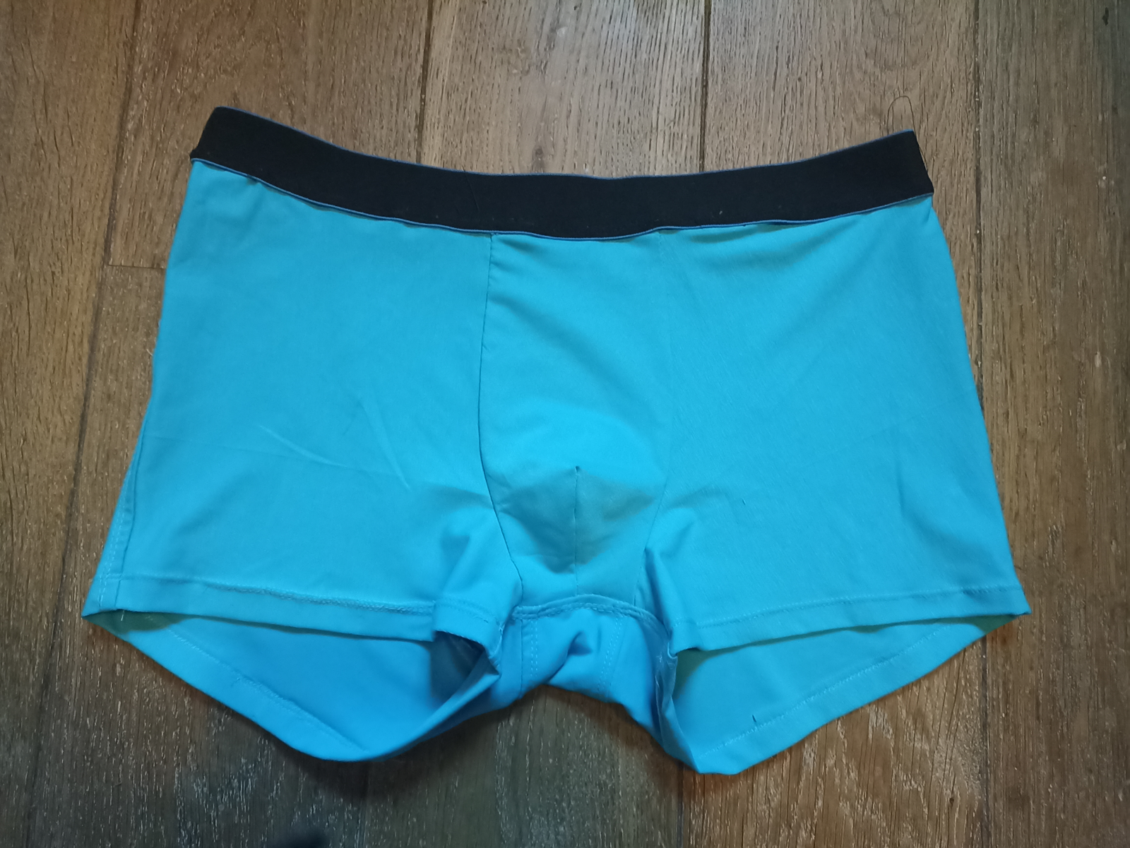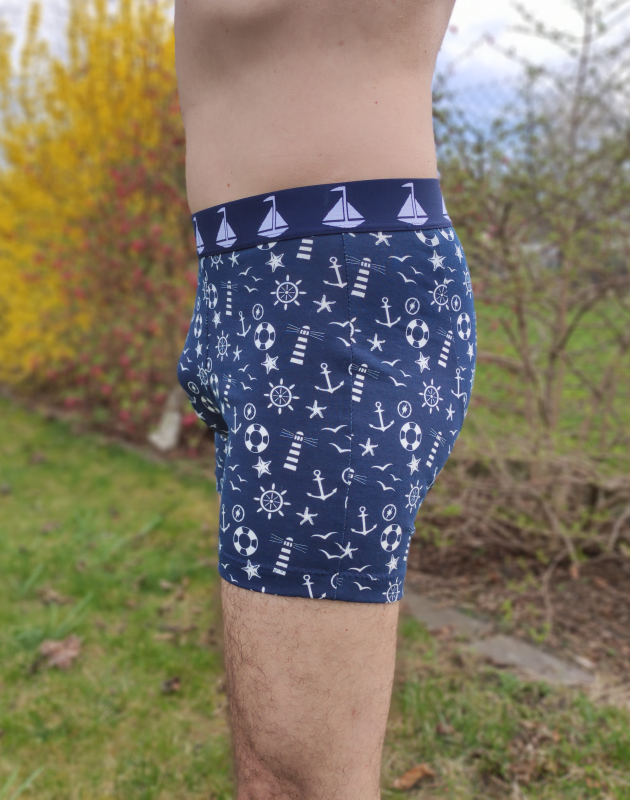 Trochu jsem se bála, co manžel řekne na ten zadní díl, dosud takový střih na svých boxerkách neměl, ale vůbec mu nevadí a po obléknutí prohlásil "Týjo, konečně něco, co je na noze upnutý a tady (v rozkroku) to má přitom místo" 🥳“