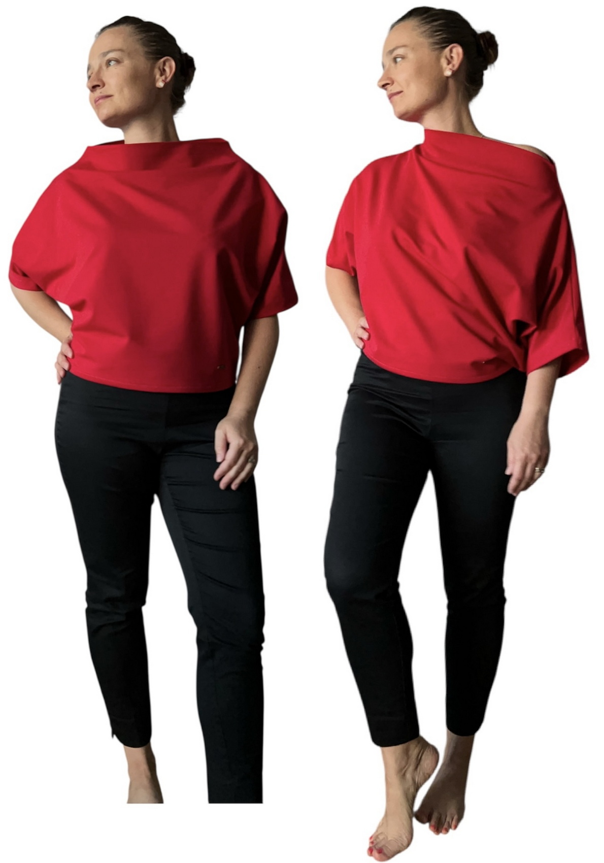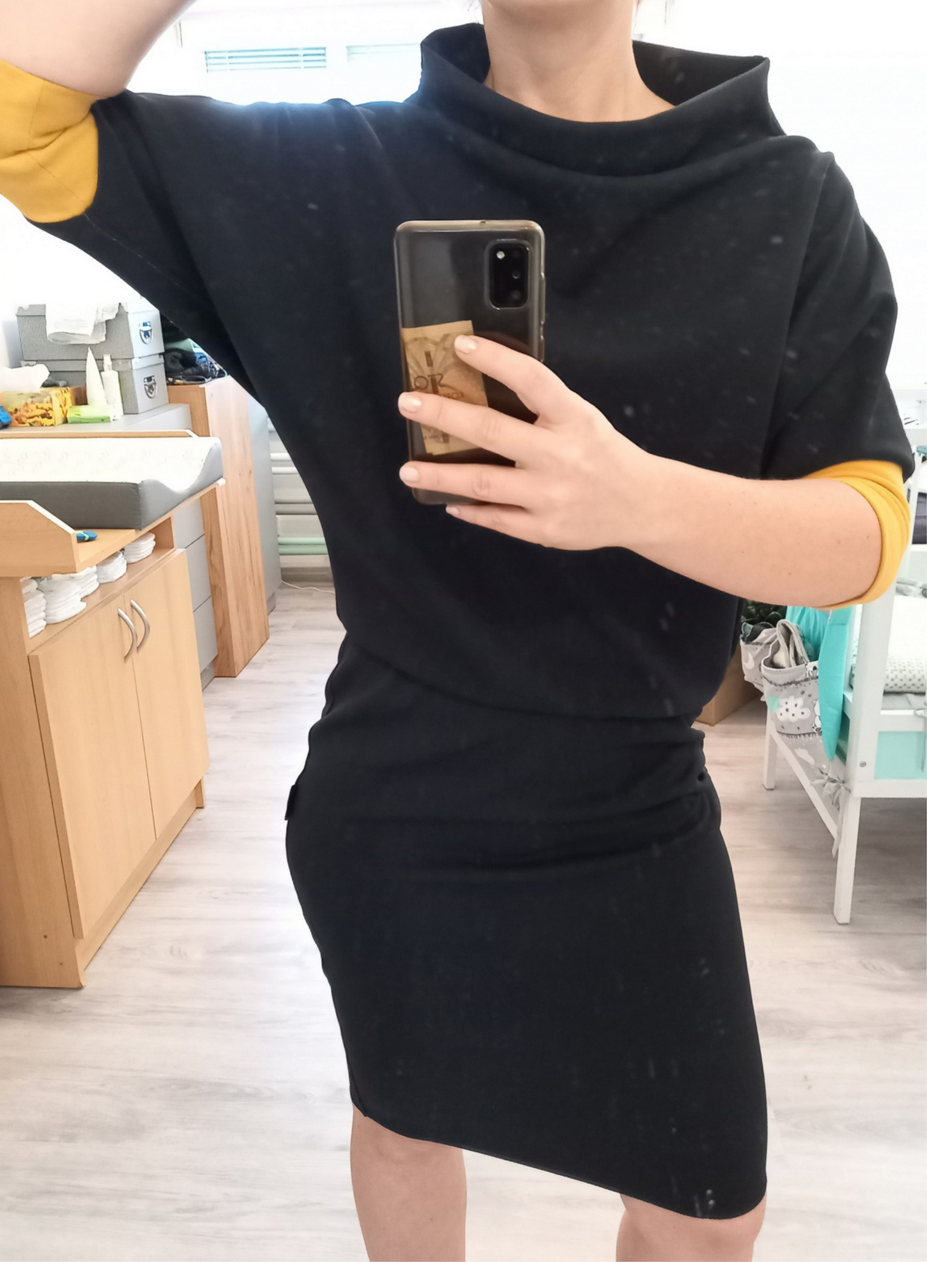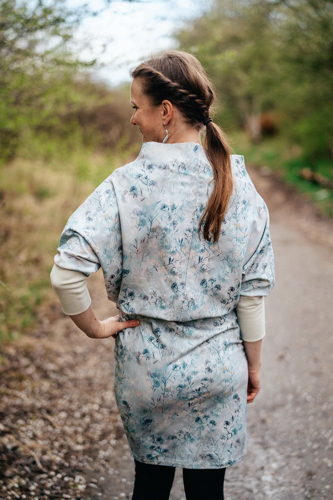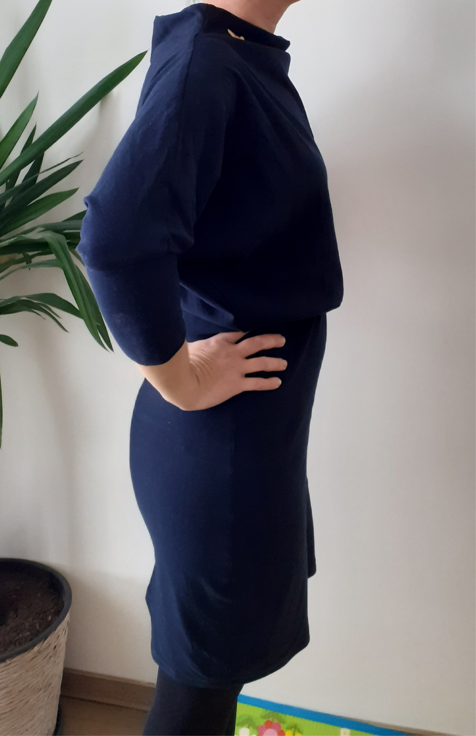 Sukně šatů má úzkou linii, dokonale tak doplní volný vršek a vytvoří velice lichotivý kousek. A teď to nejlepší : šaty jsou velice jednoduché na ušití. Díky podrobnému návodu je zvládne i začínající hobby švadlenka a pro tu zkušenou to zase bude kousek, který se bude šít skoro sám, s radostí a rychlostí.