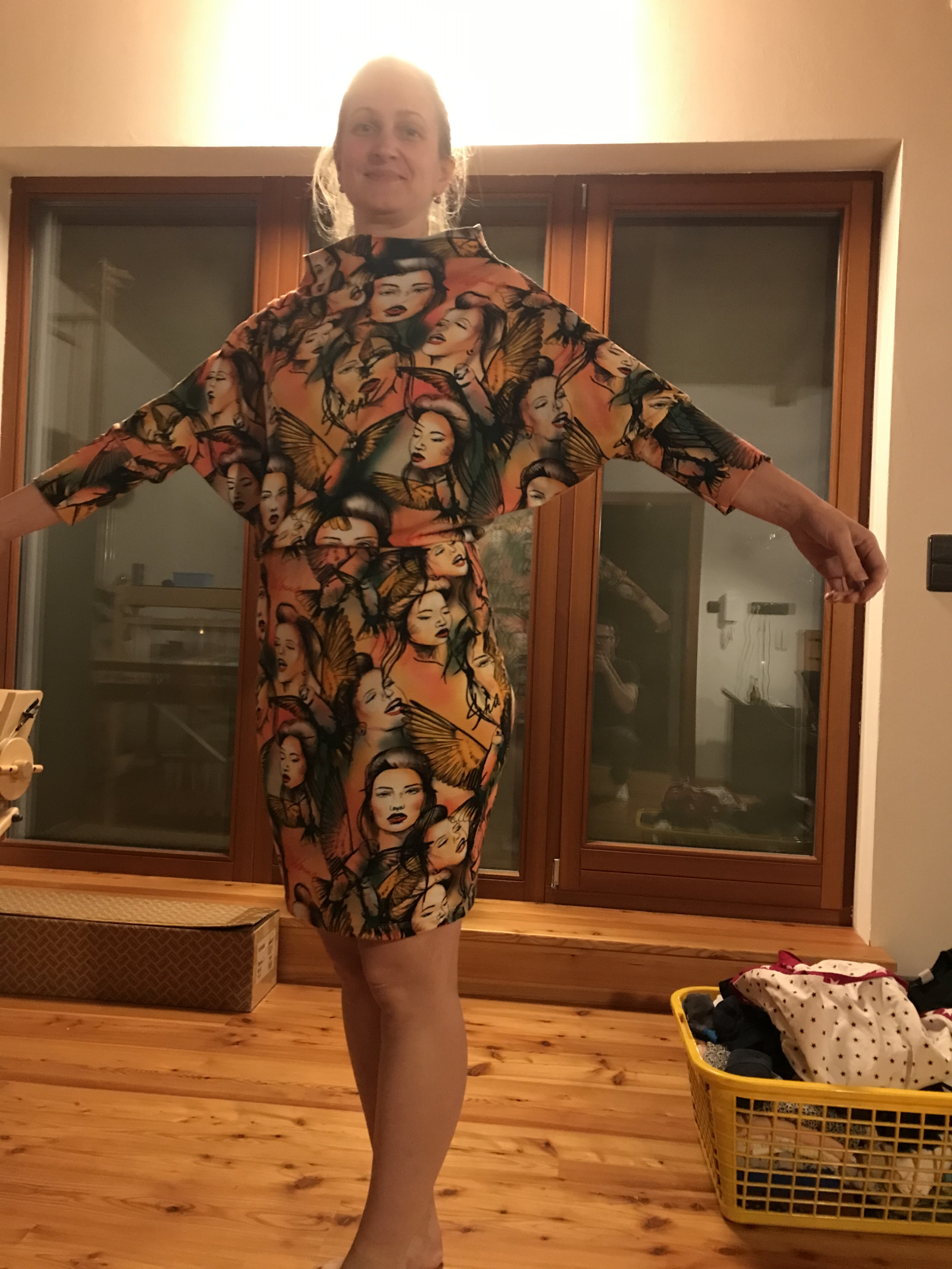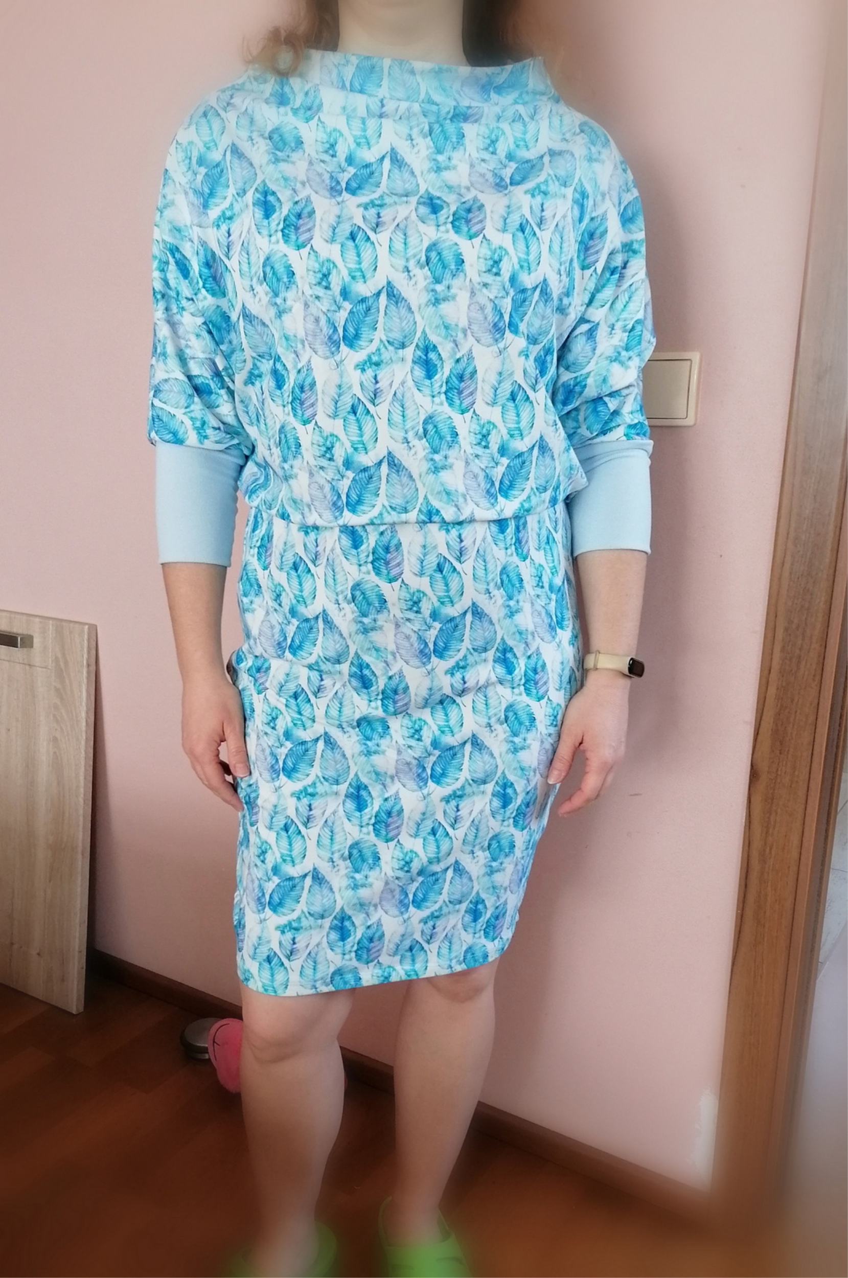 Pro šaty jsou vhodnější teplákoviny nižší gramáže (do cca 240g/m2) nebo silnější úplety. Silnější teplákoviny více trčí, šatům sluší spíše splývavější vzhled.