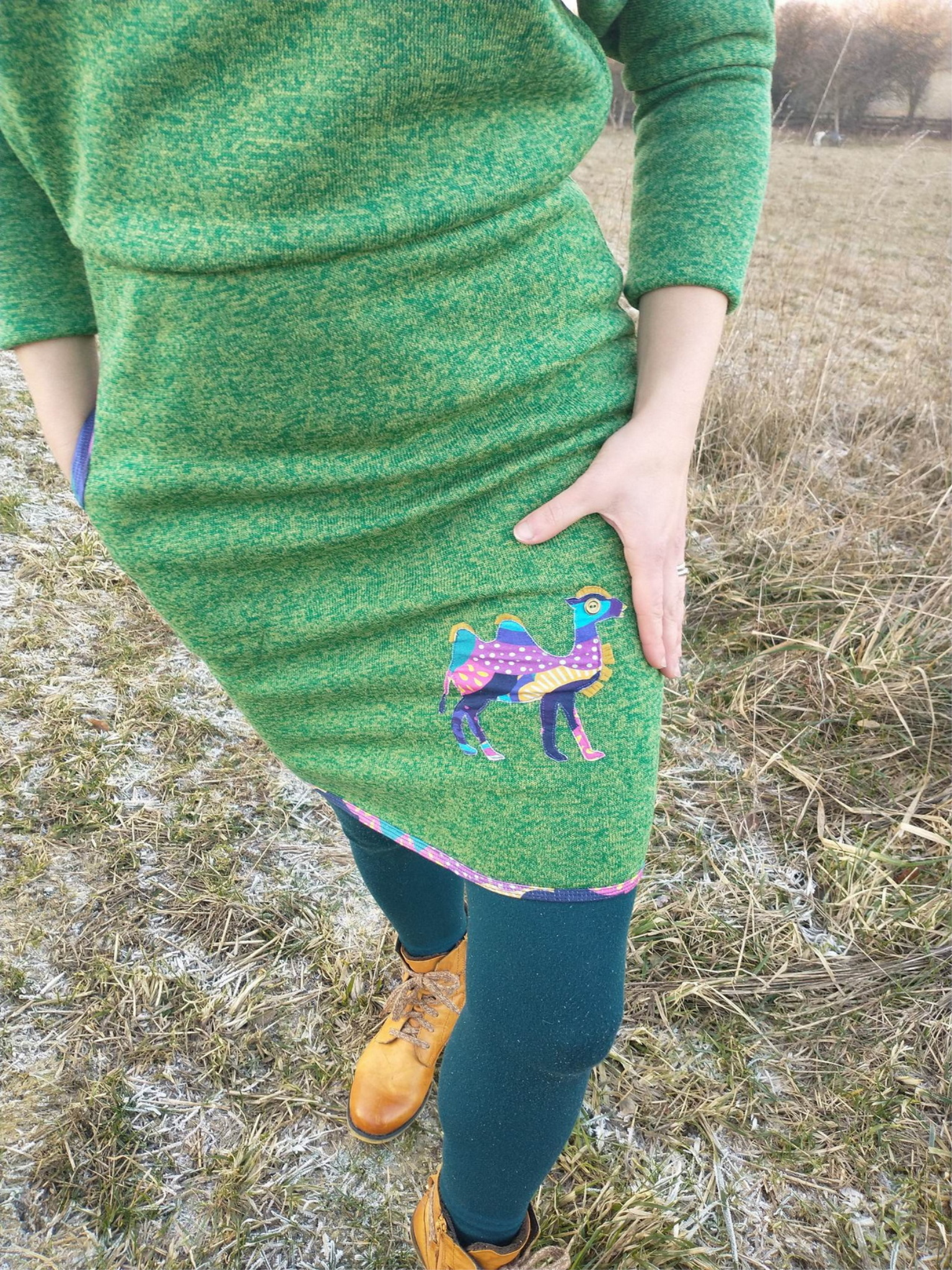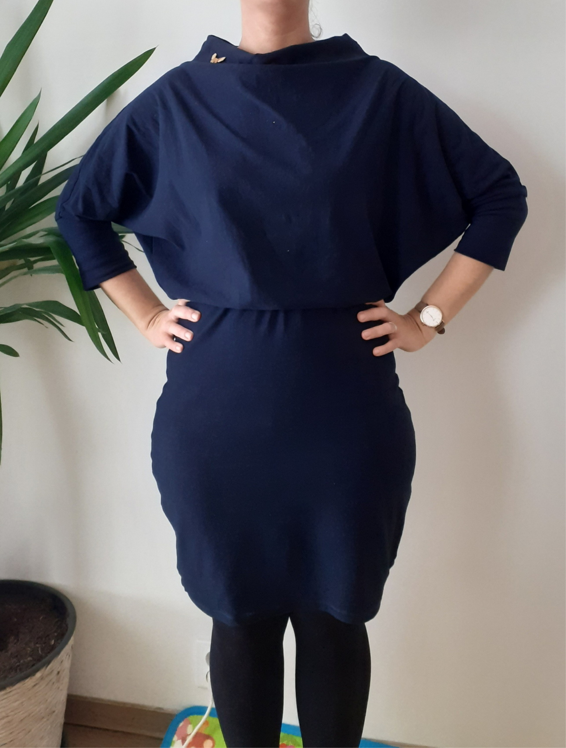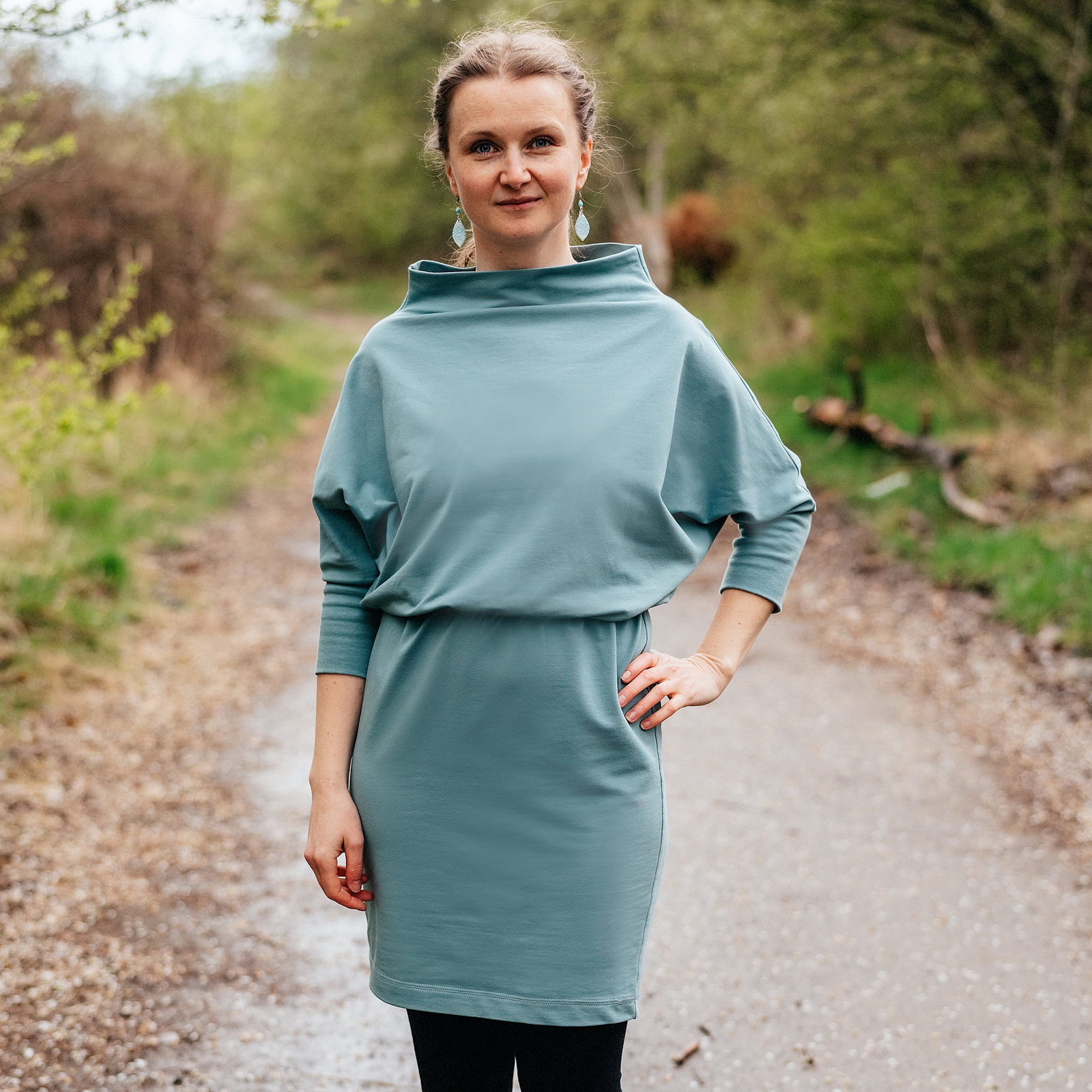 Šaty Ilona jsou úžasným kouskem, jsou ušité z teplákoviny a tak se hodí od podzimu do jara. Vrchní díl - živůtek, je příjemně volný a pohodlný, krk je řešený efektivním stojáčkem. Volné rukávy jsou na konci všity do manžety pro větší komfort.