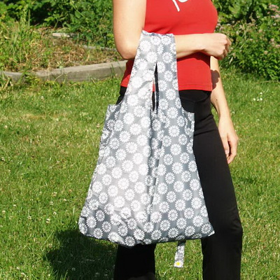 Hanka.de.rana: "Materiál je to velmi příjemný, taška z něj vypadá luxusně. Není jako každá skládací nákupka. Jen je výsledek trochu větší a proužky pro sepnutí poskládané tašky bylo nutné nastavit." *