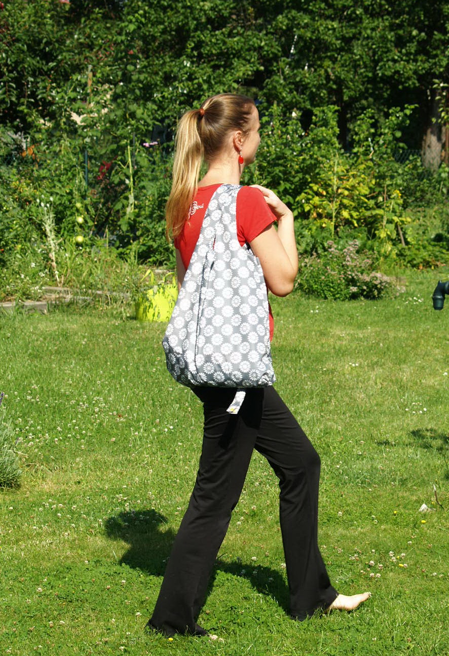 „Materiál je to velmi příjemný, taška z něj vypadá luxusně. Není jako každá skládací nákupka. Jen je výsledek trochu větší a proužky pro sepnutí poskládané tašky bylo nutné nastavit.“