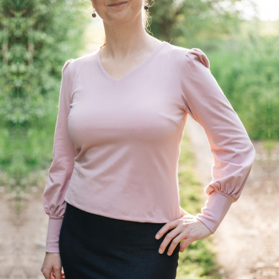 „Krásný top na běžné i sváteční nošení. Pěkně začištěný. Podle návodu se šilo moc dobře, jen jsem se potrápila u průkrčníku. Dělala jsem si pomocné šití, ale stejně vícekrát párala. Nakonec se mi to nejlépe povedlo, když jsem si to nastehovala ručně. Šila jsem postupně ve volných chvílích. A konečně došila. Děkuji“