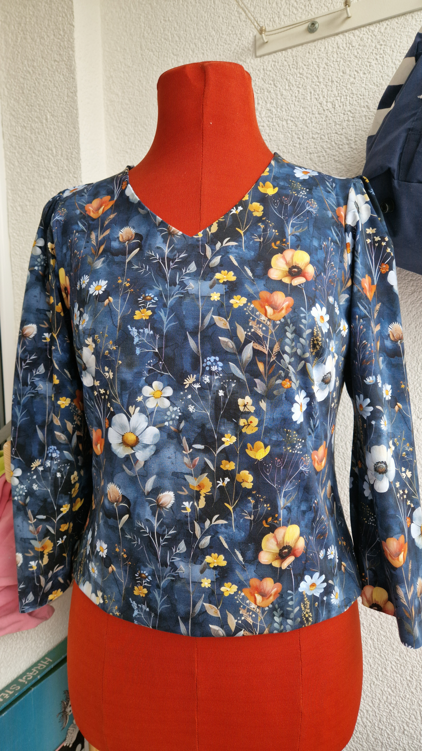 JK: "Krásný top na běžné i sváteční nošení. Pěkně začištěný. Podle návodu se šilo moc dobře, jen jsem se potrápila u průkrčníku. Dělala jsem si pomocné šití, ale stejně vícekrát párala. Nakonec se mi to nejlépe povedlo, když jsem si to nastehovala ručně. Šila jsem postupně ve volných chvílích. A konečně došila. Děkuji " *