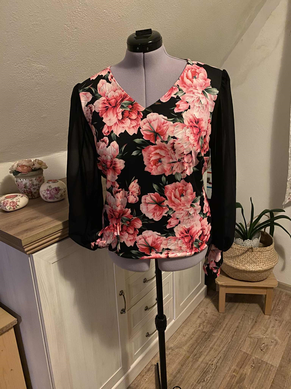 Velikost: velikost 44 Materiál: úplet, rukávy šifon