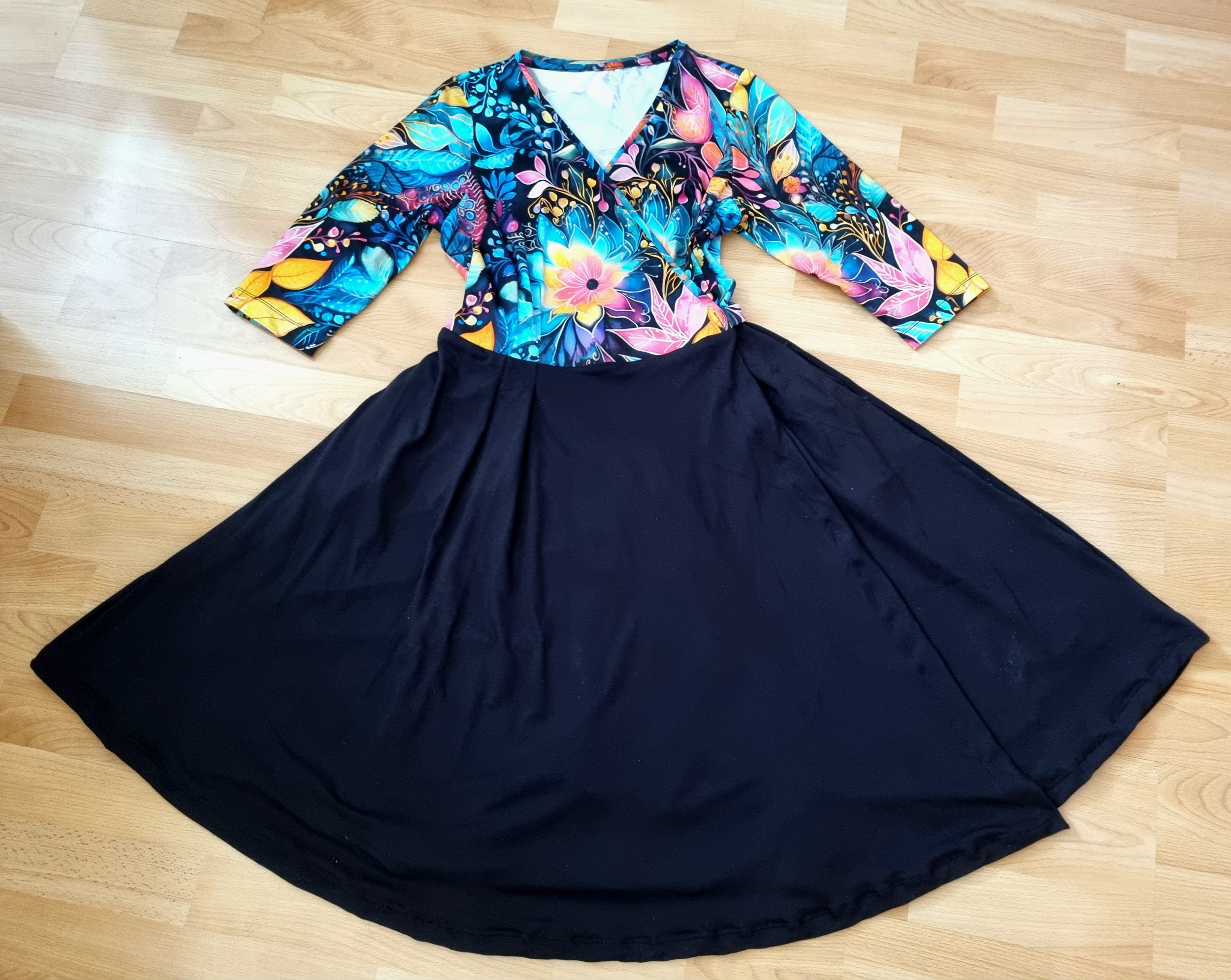 LenSo: "Šaty jsou nádherné a cítím se v nich skvěle. Střih jsem si nakonfigurovala na míru, což je naprosto super výhoda a téměř jistota, že mi hned napoprvé skvěle sednou. Kdybych šila čistou 44,tak mi v pase budou dost těsné a naopak a čekalo by mě tak mnoho úprav. Díky podrobnému videonávodu jsem šití zvládla na jedničku,bez něj bych byla ztracená. Jinak je to trochu pracnější šicí projekt,ale stojí za to. Oproti puvodnimu střihu jsem si zkratila delku,ale ješte je alespon o 10-15 cm zkrátím lehce nad kolena." *