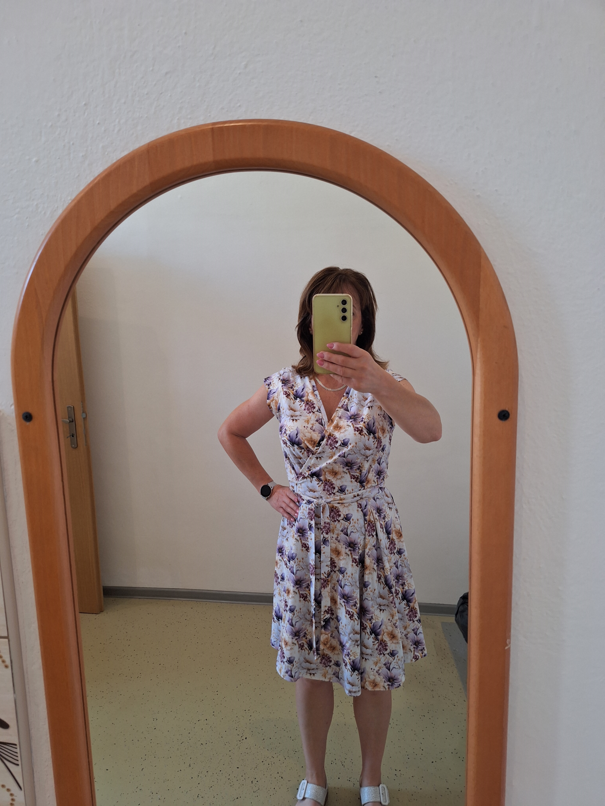 Střih šatů je primárně určen pro bavlněné úplety, avšak lze použít i viskozu či bambus, kde ale doporučujeme zvolit střih o 1 velikost menší, protože látka je tahavější. Také je střih odzkoušen pro tkanou látku. Šaty lze ušít z tkaných lehkých látek. Viskozová tkanina, silky a pod. U pevných materiálů je doporučeno zvolit o 1 velikost větší střih. Zde si překontrolujte šíři rukávu ve střihu a popřípadě nastavte rukáv volnější.