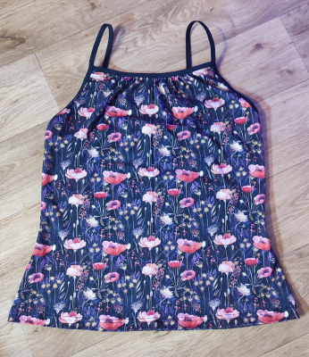 VF: „Řasení předního dílu bylo díky návodu hračka. Zádrhel byla gumička na zádech. Málo jsem napínala a byla volná. Po předělání a poměření přímo na postavě tílko sedlo perfektně. Díky nastavení rozměrů přes boky mám konečně tílko co nepoleze neustále nahoru. “