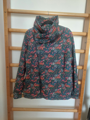 JV: „Dlouho jsem se odhodlávala mikinu ušít, bála jsem se zipu, ale s pomocí skvělého videonávodu to nakonec šlo i mně jako začátečníkovi. Podařilo se mi obrátit pravou a levou část předního dílu, ale příště už si na to dám pozor. Moc se mi líbí :)“