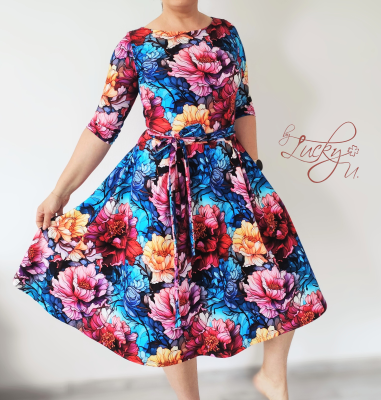 Lucie H.: „Nejkrásnější šaty, které jsem kdy šila. Návod, značky ve střihu super. Rady ve videonávodu mě zase obohatily o nové znalosti. Střih je pracnější (propracovaný), výsledek určitě stojí za to. Už mám nastříhané další. Dcerka se nepřestává točit 😂“