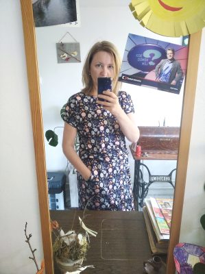 IP: „Dárek k narozeninám a první šití podle tohoto vzoru - na přání kamarádky bez kapes. Nějak mi nedošlo, že šiju "maličké" šaty, tak jsem si trochu zaklela při prošívání založených rukávů, příště bych si je asi založila před sešitím. Každopádně jsou fakt prďácké, šily se hezky a už se těším na moje s kapsami.“