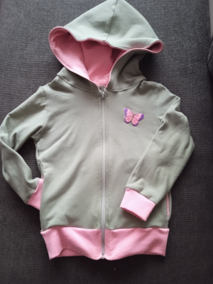 Jitka W.: „Moje první mikina na zip a s kapucí.Diky moc za video,jinak bych nezvládla.Jen kapuce se mi kroutí,má vše plno chyb, zip poprvé,kapsy také nic moc, začištění kapuce...,ale vnučka bude určitě mít i tak radost.“