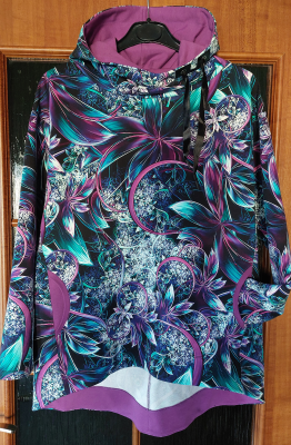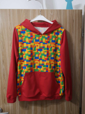 RF: „Môj prvý mikinový počin, navyše s kapucňou. Šila sa super aj keď mi úplne nevyšla kapucňa vpredu prekrížená a pridala som klokanie vrecko.“