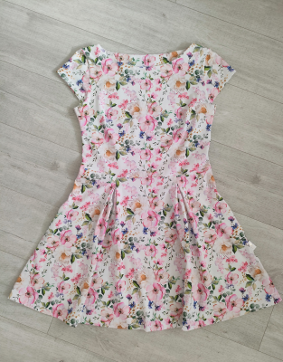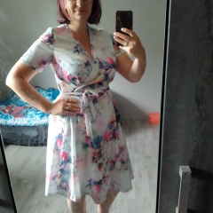 I: „Šaty se šily dobře, na začátku jsem špatně zvolila velikost (38), po ušití byly obrovské, tak zmenšeny na velikost 34 a myslím, že by mohly být ještě menší. Se střihem jsem spokojena, přesně takový jsem hledala a už vybírám další látku. Děkuji. “