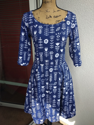 Zdeňka: „I když jsem si zadala šířku boků tak jsem musela sukni zmenšit o 8cm abych nebyla jak v pytli .Výstřih jsem si zvětšila a do pasu všila gumu.Určitě to není poslední Monika když už vím kde přidat a kde ubrat🤣“