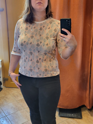 Hanča: „Tricko se silo krasne. Material jsem na prvni zkusebni kus pouzila zbytek upletu, takze jsem zkratila rukavy aby mi to vyšlo :) “