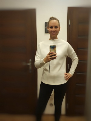 KV: „Toto je moje třetí Marika, druhá mikina pro mne. Cítím se v ní úžasně a je příjemně teplá. Střih jsem si upravila - užší rukávy, manžety a užší průkrčník. “