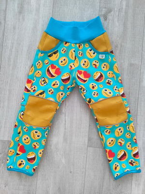 MV: „Moje první softsheelove kalhoty. Šité dle videonávodu. Návod krásně vede. První zásek hned zkraje u našívání pruženky. Materiály se v mašině NEPOSUNOVALY. Po zatahání nitek dozadu se to vyřešilo a šití se rozjelo:) Z materiálu kousky beránku všude:) Výsledek se líbí, hned jak se více ochladí je vyzkoušíme i venku.... “