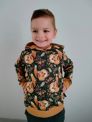 KK: „Velikost sedí suprově a mikina je tak akorát, není ani opnutá, ani úplně pytloidní, takže opravdu jak pro holku, tak pro kluka. Ouška jsem si vypůjčila že střihu na vestu Viky. Určitě to není naposledy, co jsem podle "Michala" šila. :) Střih je jednoduchý a srozumitelný, jak já říkám "blbuvzdorný", navíc jsem využila možnost vytisknout si jej i s přídavky, takže šla práce opravdu raz dva. :)“