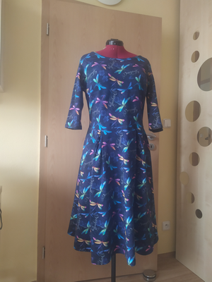 HN: „Ty šaty jsou úžasné, šila jsem variantu s delší sukní. Přesto, že jsem prakticky začátečník, tak jsem je podle úžasného návodu ušila bez problémů. Určitě si ušijí ještě jedny, jen asi o velikost menší. Oproti Pavlínam, které jsem také šila ve vel 36. Jsou mi volněji. Straně moc děkuji za střih.“