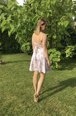 Bjeta: „Šaty se šily výborně dle video návodu. Poprvé jsem využila možnost tisku na A3 a rázem ubylo lepení. Připadaly mi krátké, ale lem podobný jako u Pavlíny to spravil a šaty dle mého oživil. Cítím se v nich moc dobře. ;) “