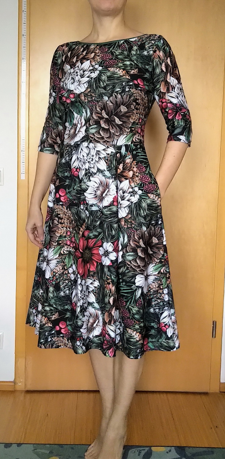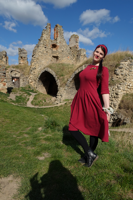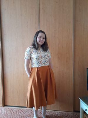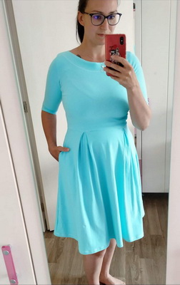„Jsem naprosto nadesna, šila jsem poprvé a určitě ne naposledy. Rukávy jsem zkrátila a sukni jen zahla, jelikož jsem neměla dost látky na pruh.“