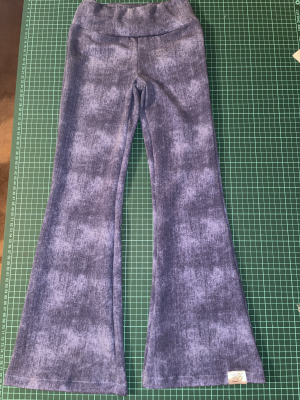 „Druhé šití dle střihu, šila jsem z úpletu, což víc pruží, tudíž šitá velikost 128 odpovídá pro velikost 134, jelikož nositel není k v domě, ušila jsem tři tunýlky na gumu šíře 3 cm, a případně po vyzkoušení gumy povolím nebo zkrátím. “