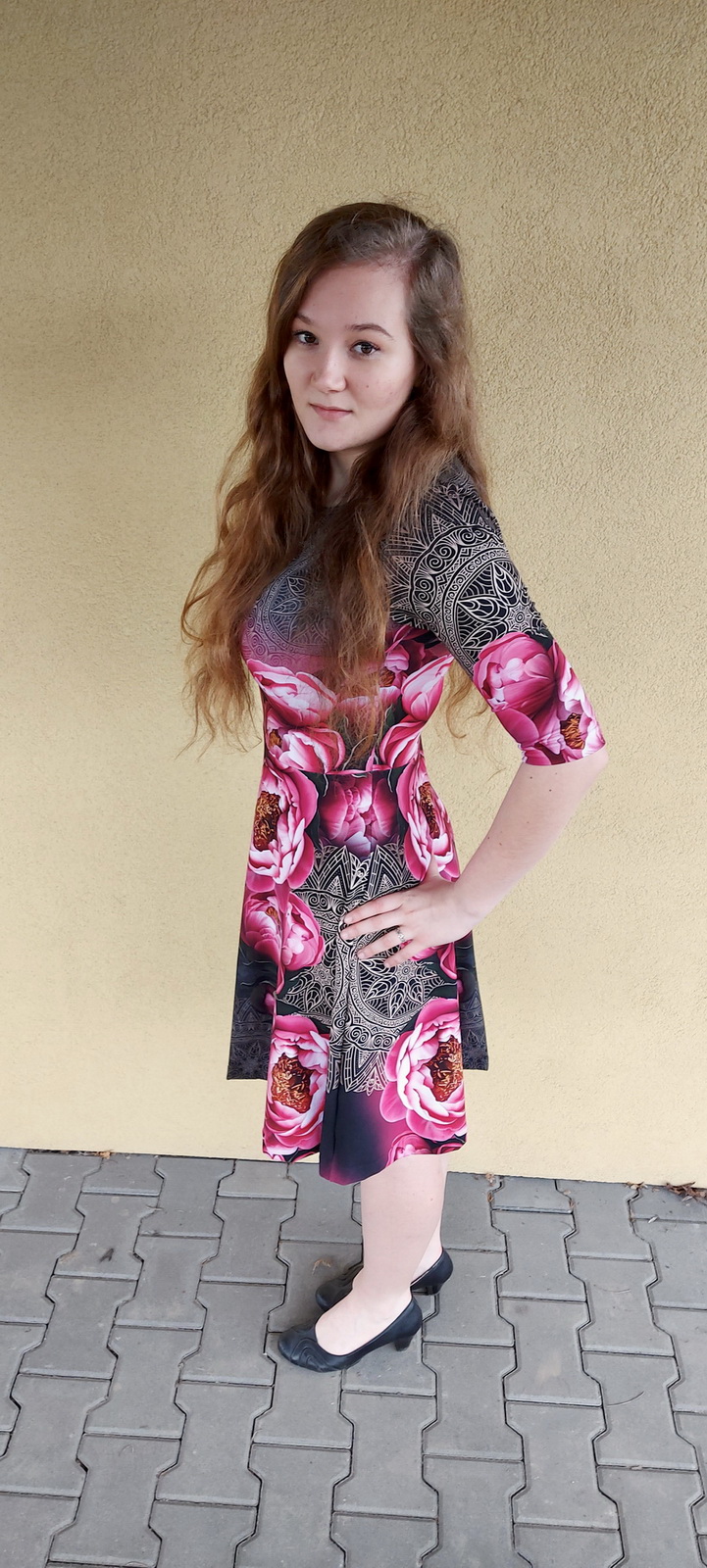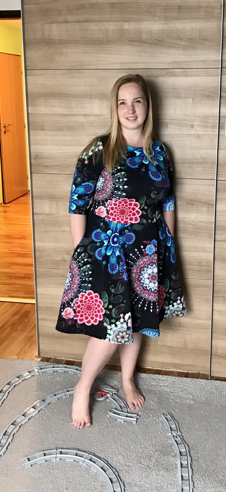 Katkula: „Šaty jsou super, pohodlné. Spodní lem jsem zahla 5 cm a prošila dvojjehlou. Měřím 160cm. “