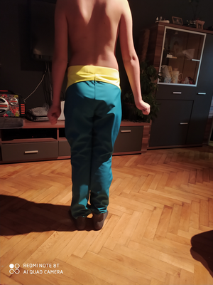 HF: „Střih parádní, sedí skvěle! Přidala jsem si 3 cm na délku a byly úplně zbytečné. Příště si jen pustím návod - a naučím se šít trochu lépe náplet do pasu ;)“