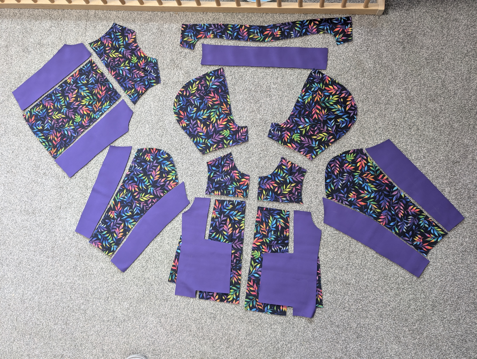 Teplákovina z Barevného šití vel. 42 konfigurovana konfigurovaný kombinace více střihů 40-44 dlouhá sukně rukávy k lokti pružný teplákovina vzorovaný